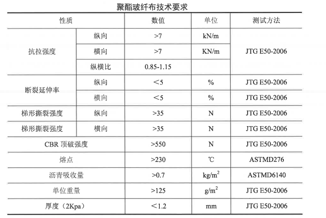聚酯玻纖布的技術(shù)質(zhì)量要求(具體詳見(jiàn)報(bào)價(jià)資料合同):聚酯玻纖布是由聚酯纖維和玻璃纖維合成的無(wú)紡合成材料,供貨單位必須提交出廠檢驗(yàn)報(bào)告及進(jìn)口商檢報(bào)告,質(zhì)量標(biāo)準(zhǔn)見(jiàn)如下表: