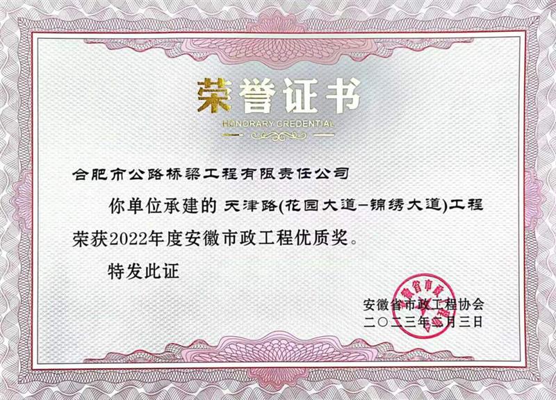 此外,合肥路橋天津路(花園大道-錦繡大道)工程還曾榮獲2022年度合肥市市政工程“廬州杯”獎等榮譽,這充分展示了合肥路橋優(yōu)秀施工技術和工藝先進水平,以此為契機,合肥路橋將在市政工程上持續(xù)發(fā)力深耕,堅守匠心、篤定前行,在市政工程領域再創(chuàng)佳績,為安徽省建設發(fā)展貢獻積極力量。